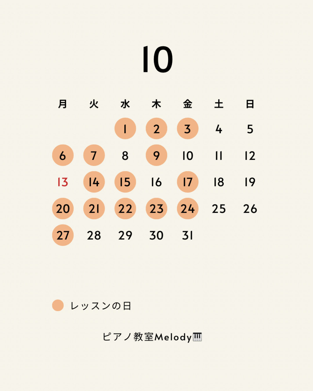 • 10月レッスンスケジュールをお知らせします。