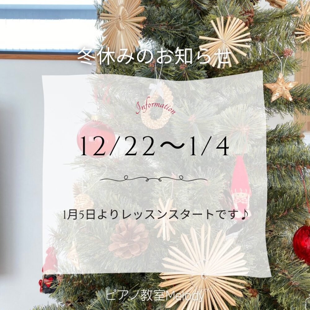 • 12/22~1/4まで教室は冬休みをいただきます。